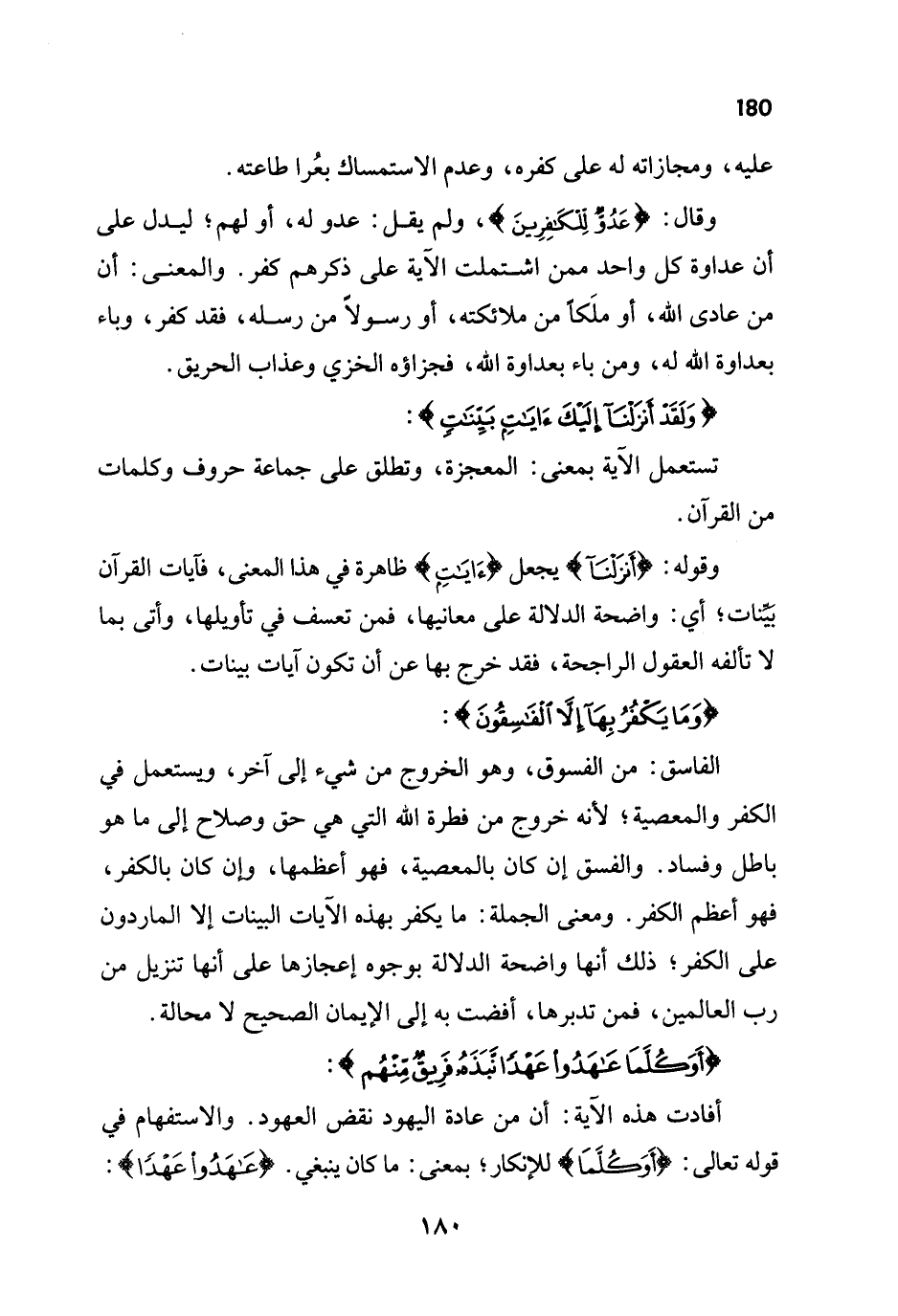 وقال: {عَدُوٌّ لِلْكَافِرِينَ}، ولم يقل: عدو له، أو لهم؛ ليدل على أن عداوة كل واحد ممن اشتملت الآية على ذكرهم كفر. والمعنى: أن من عادى الله، أو ملَكاً من ملائكته، أو رسولاً من رسله، فقد كفر، وباء بعداوة الله له، ومن باء بعداوة الله، فجزاؤه الخزي وعذاب الحريق.