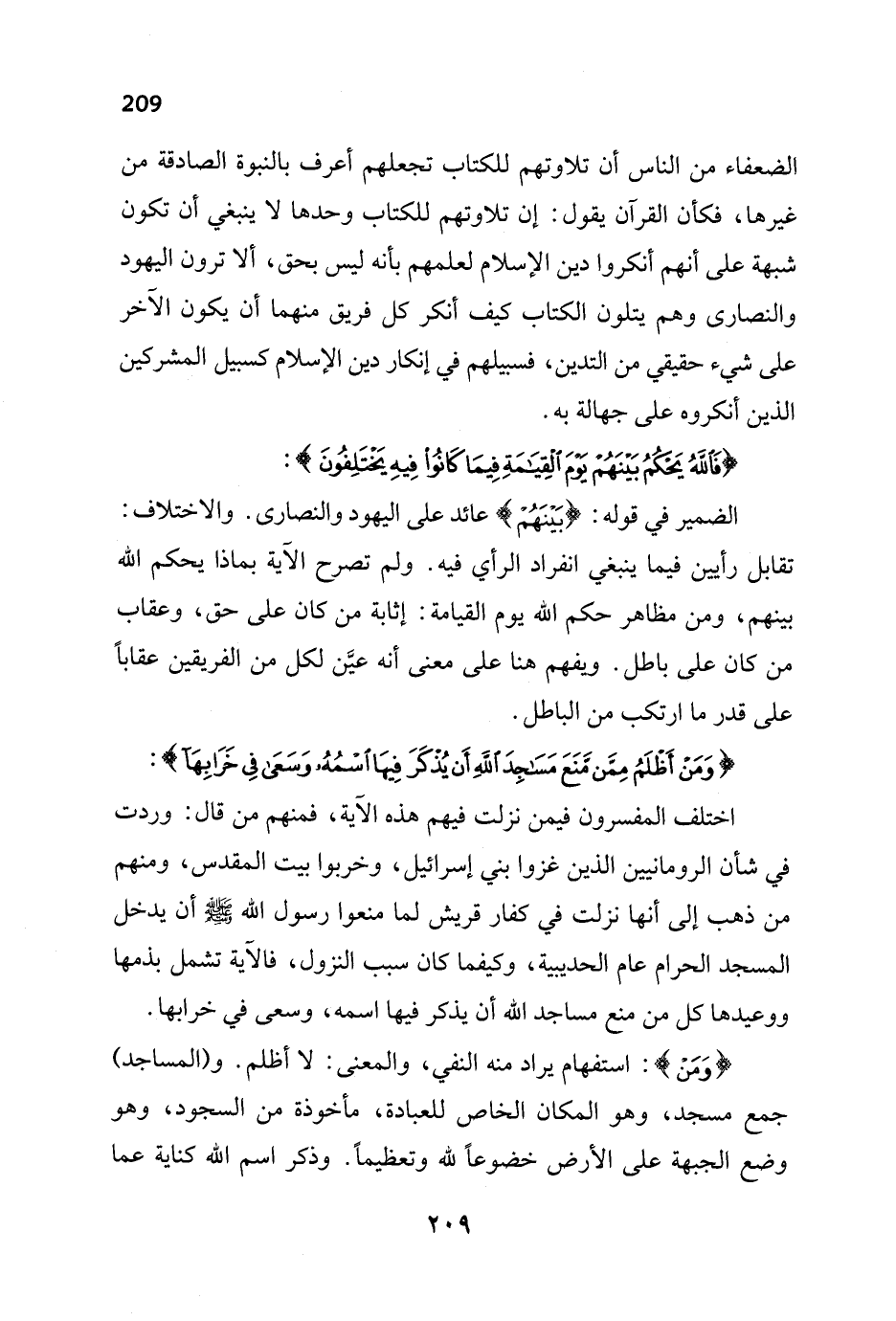 اختلف المفسرون فيمن نزلت فيهم هذه الآية، فمنهم من قال: وردت في شأن الرومانيين الذين غزوا بني إسرائيل، وخربوا بيت المقدس، ومنهم من ذهب إلى أنها نزلت في كفار قريش لما منعوا رسول الله - صلى الله عليه وسلم - أن يدخل المسجد الحرام عام الحديبية، وكيفما كان سبب النزول، فالآية تشمل بذمها ووعيدها كل من منع مساجد الله أن يذكر فيها اسمه، وسعى في خرابها.
