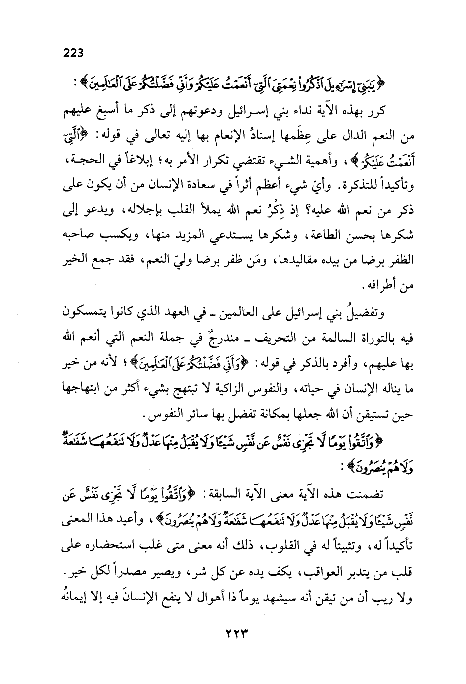 {وَاتَّقُوا يَوْمًا لَا تَجْزِي نَفْسٌ عَنْ نَفْسٍ شَيْئًا وَلَا يُقْبَلُ مِنْهَا عَدْلٌ وَلَا تَنْفَعُهَا شَفَاعَةٌ وَلَا هُمْ يُنْصَرُونَ}:
