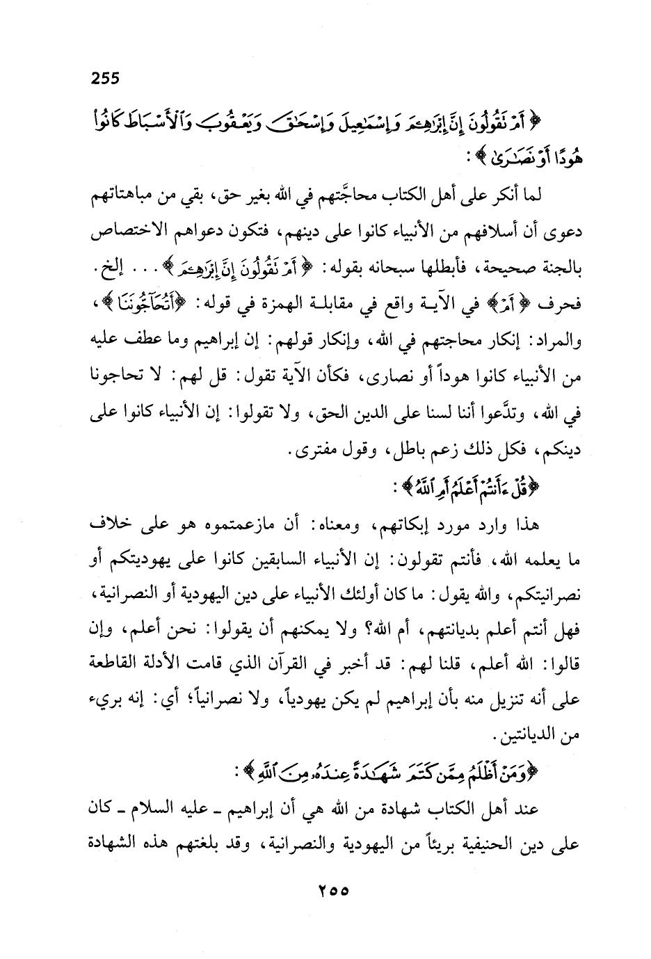 عند أهل الكتاب شهادة من الله هي أن إبراهيم - عليه السلام - كان على دين الحنيفية بريئاً من اليهودية والنصرانية، وقد بلغتهم هذه الشهادة