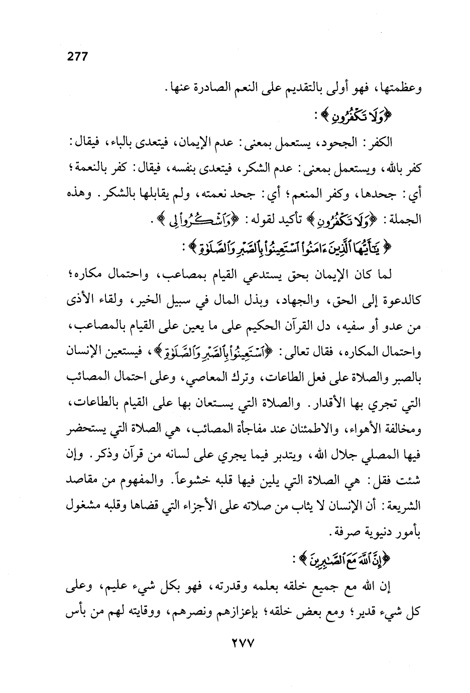 لما كان الإيمان بحق يستدعي القيام بمصاعب، واحتمال مكاره؛ كالدعوة إلى الحق، والجهاد، وبذل المال في سبيل الخير، ولقاء الأذى من عدو أو سفيه، دل القرآن الحكيم على ما يعين على القيام بالمصاعب، واحتمال المكاره، فقال تعالى: {اسْتَعِينُوا بِالصَّبْرِ وَالصَّلَاةِ}، فيستعين الإنسان بالصبر والصلاة على فعل الطاعات، وترك المعاصي، وعلى احتمال المصائب التي تجري بها الأقدار. والصلاة التي يستعان بها على القيام بالطاعات، ومخالفة الأهواء، والاطمئنان عند مفاجأة المصائب، هي الصلاة التي يستحضر فيها المصلي جلال الله، ويتدبر فيما يجري على لسانه من قرآن وذكر. وإن شئت فقل: هي الصلاة التي يلين فيها قلبه خشوعاً. والمفهوم من مقاصد الشريعة: أن الإنسان لا يثاب من صلاته على الأجزاء التي قضاها وقلبه مشغول بأمور دنيوية صرفة.