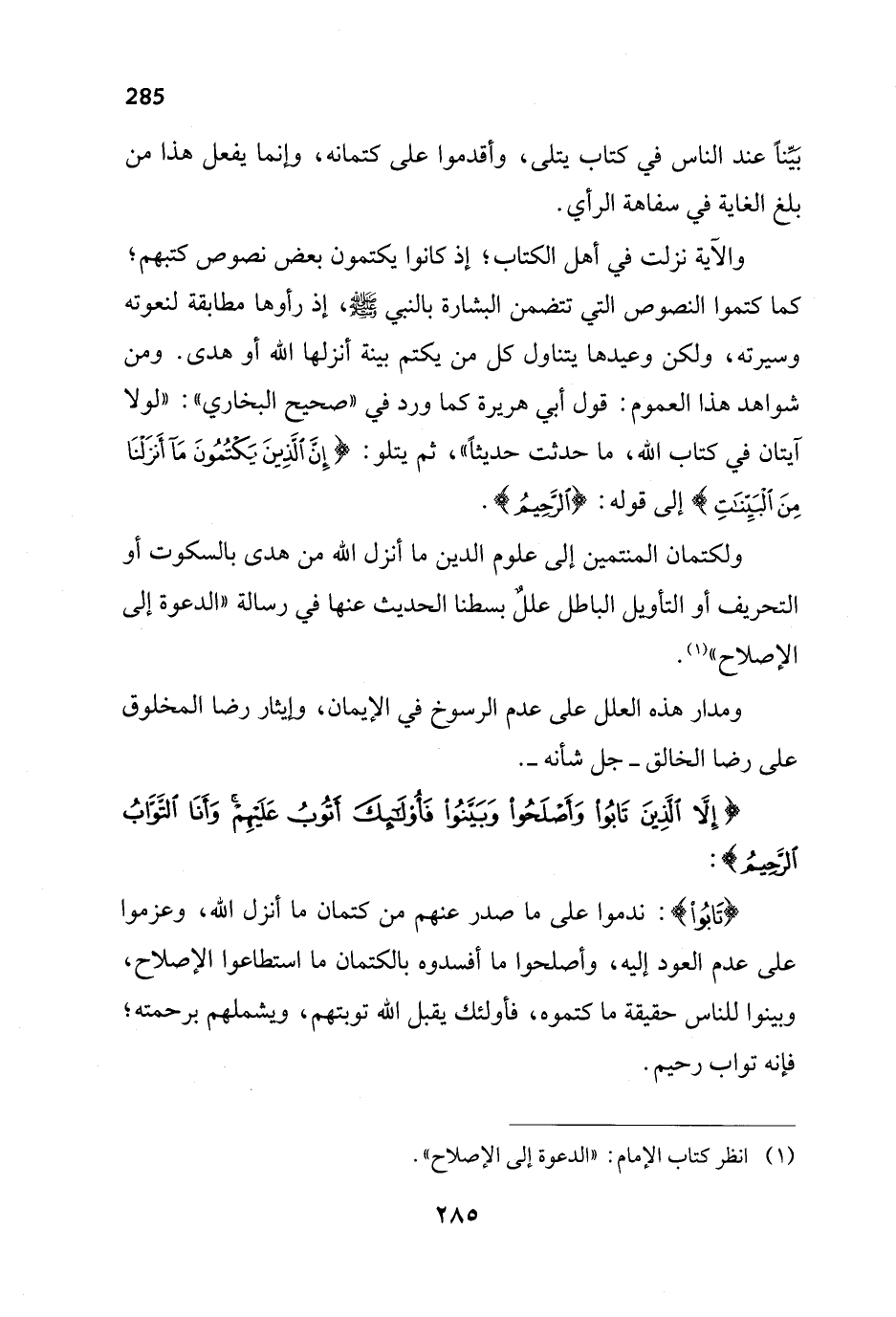 ولكتمان المنتمين إلى علوم الدين ما أنزل الله من هدى بالسكوت أو التحريف أو التأويل الباطل عللٌ بسطنا الحديث عنها في رسالة "الدعوة إلى الإصلاح" (¬1).