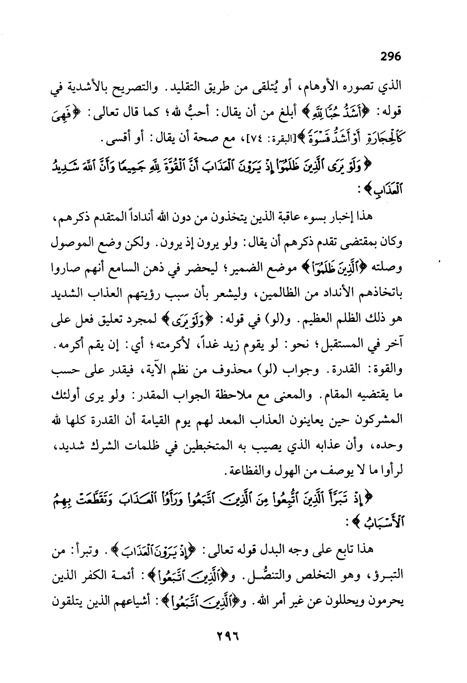 {إِذْ تَبَرَّأَ الَّذِينَ اتُّبِعُوا مِنَ الَّذِينَ اتَّبَعُوا وَرَأَوُا الْعَذَابَ وَتَقَطَّعَتْ بِهِمُ الْأَسْبَابُ}: