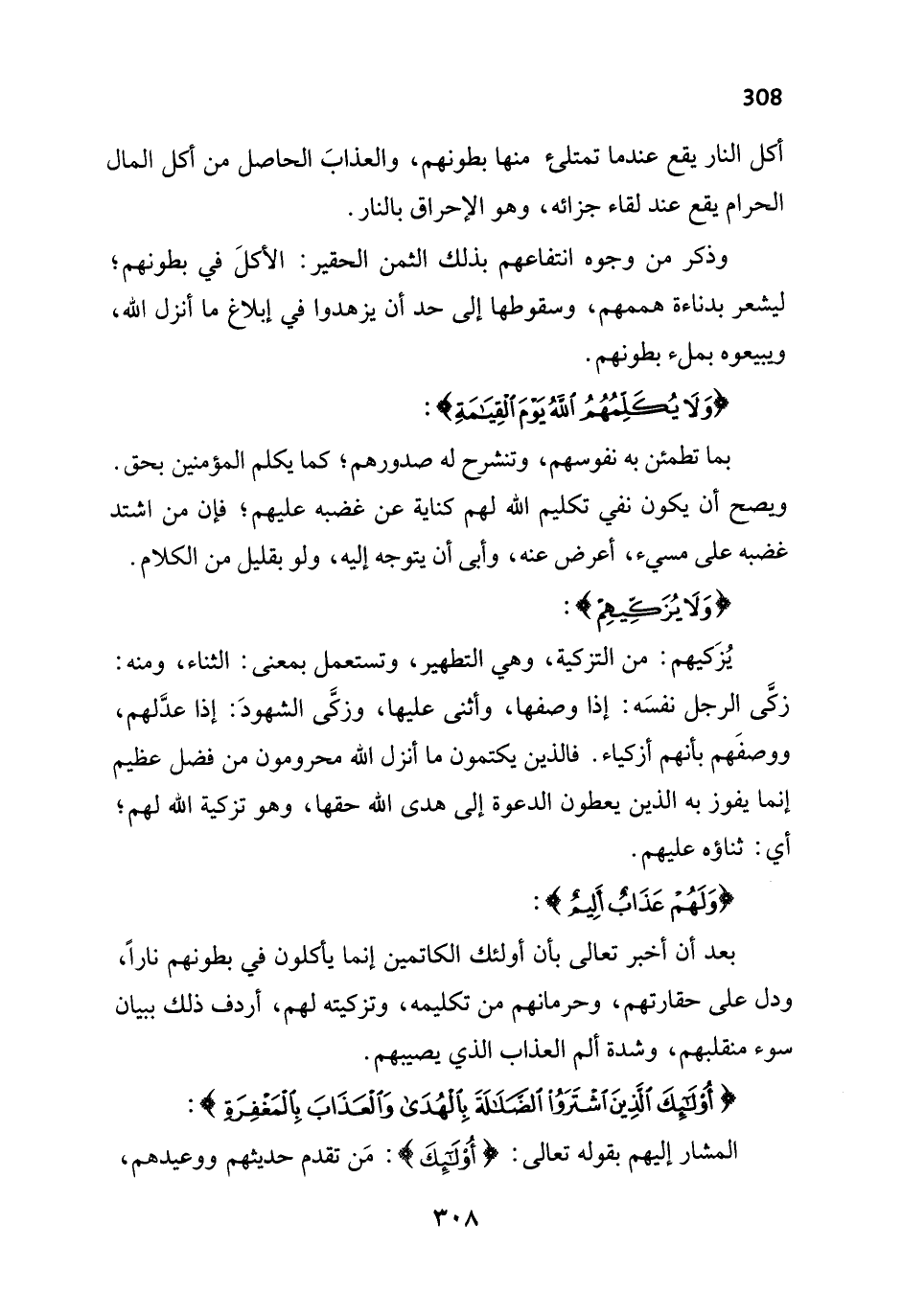 بما تطمئن به نفوسهم، وتنشرح له صدورهم؛ كما يكلم المؤمنين بحق. ويصح أن يكون نفي تكليم الله لهم كناية عن غضبه عليهم؛ فإن من اشتد غضبه على مسيء، أعرض عنه، وأبى أن يتوجه إليه، ولو بقليل من الكلام.