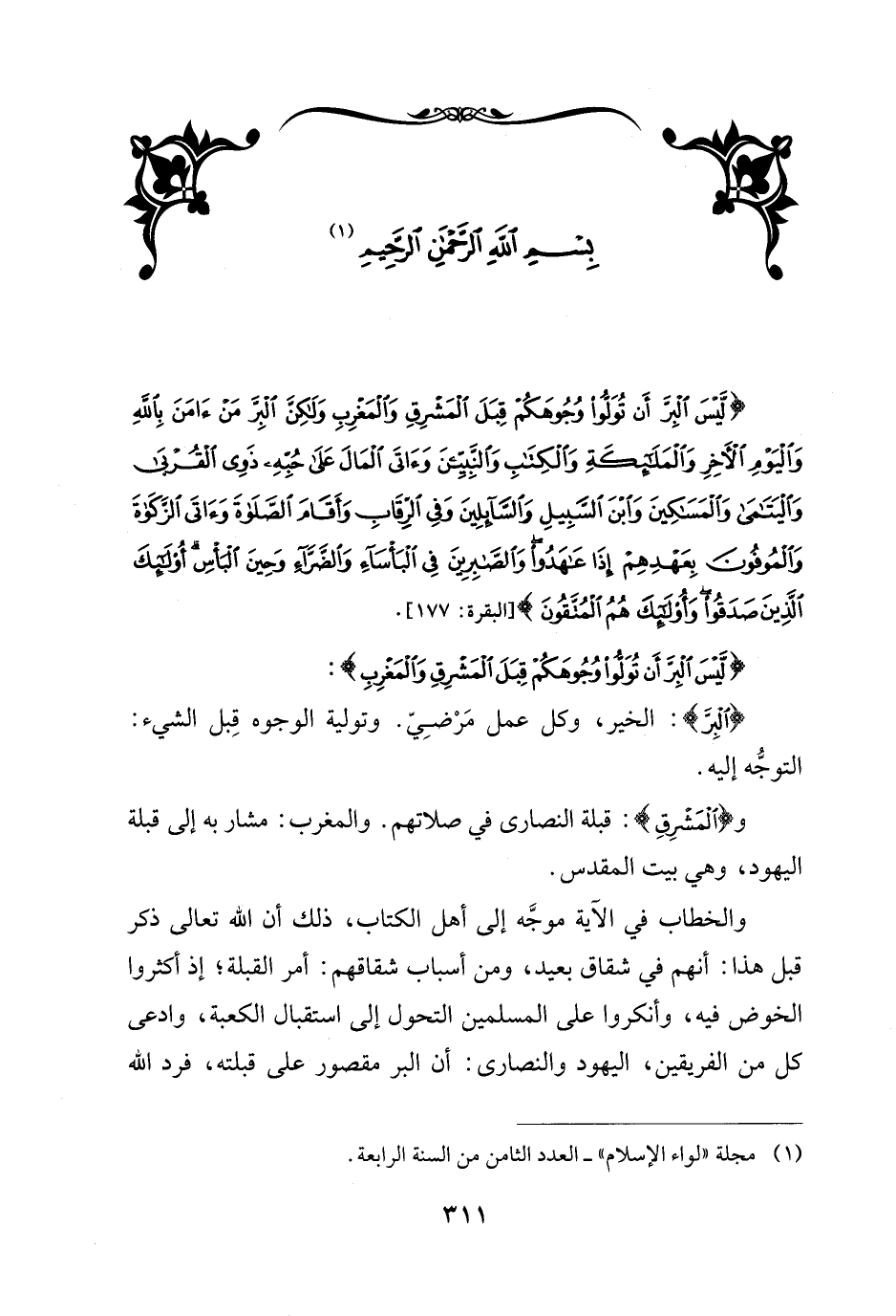 {لَيْسَ الْبِرَّ أَنْ تُوَلُّوا وُجُوهَكُمْ قِبَلَ الْمَشْرِقِ وَالْمَغْرِبِ}: