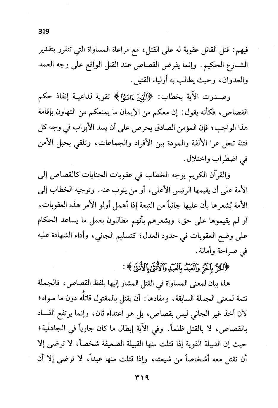 {الْحُرُّ بِالْحُرِّ وَالْعَبْدُ بِالْعَبْدِ وَالْأُنْثَى بِالْأُنْثَى}: