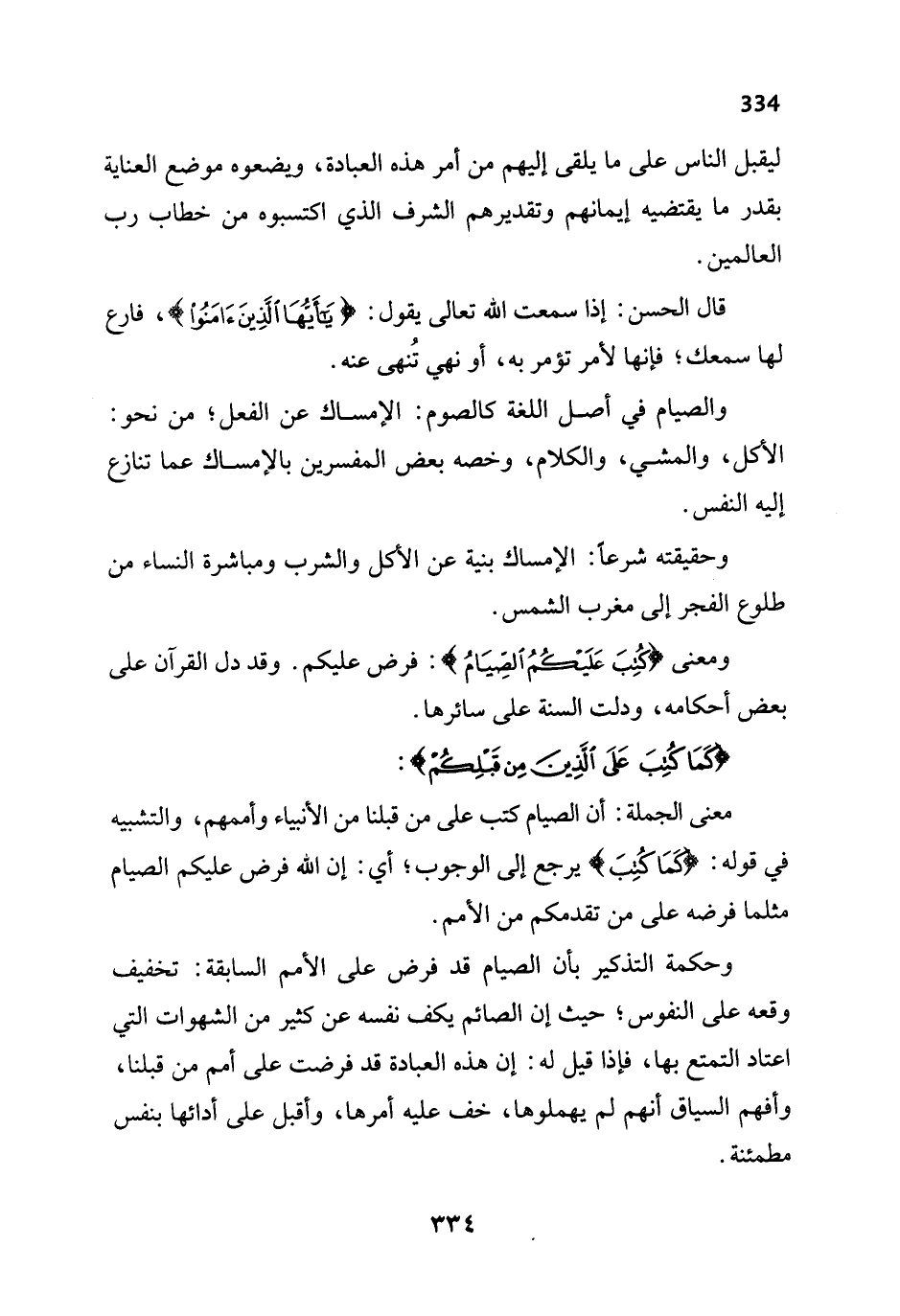 ومعنى {كُتِبَ عَلَيْكُمُ الصِّيَامُ}: فرض عليكم. وقد دل القرآن على بعض أحكامه، ودلت السنة على سائرها.