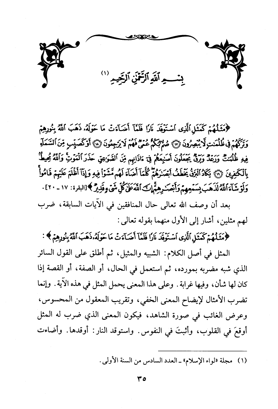 (¬1) مجلة "لواء الإسلام" - العدد السادس من السنة الأولى.
