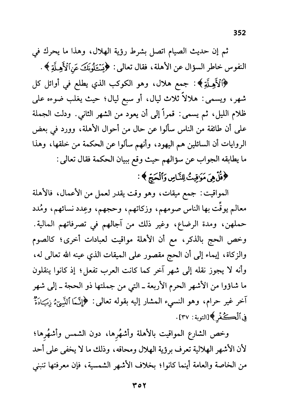 وخص الشارع المواقيت بالأهلة وأشهُرِها، دون الشمس وأشهُرِها؛ لأن الأشهر الهلالية تعرف برؤية الهلال ومحاقه، وذلك ما لا يخفى على أحد من الخاصة والعامة أينما كانوا؛ بخلاف الأشهر الشمسية، فإن معرفتها تنبني