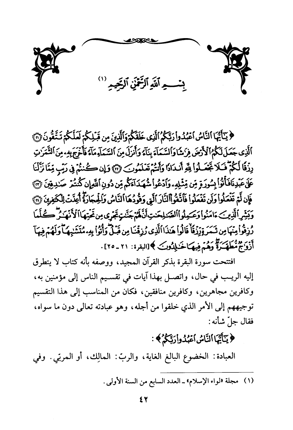 (¬1) مجلة "لواء الإسلام" - العدد السابع من السنة الأولى.