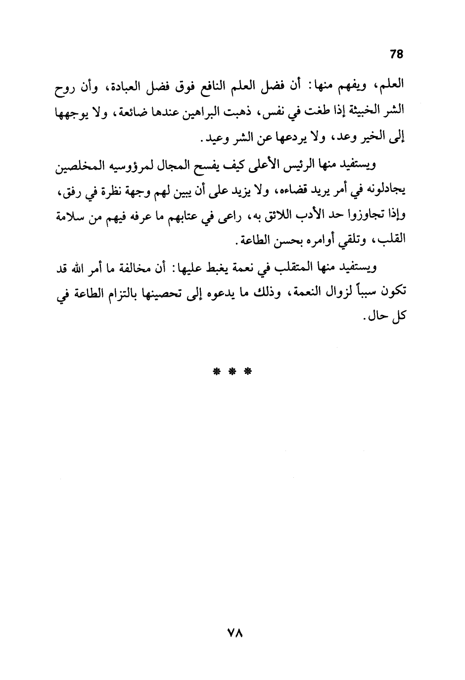 العلم، ويفهم منها: أن فضل العلم النافع فوق فضل العبادة، وأن روح الشر الخبيثة إذا طغت في نفس، ذهبت البراهين عندها ضائعة، ولا يوجهها إلى الخير وعد، ولا يردعها عن الشر وعيد.