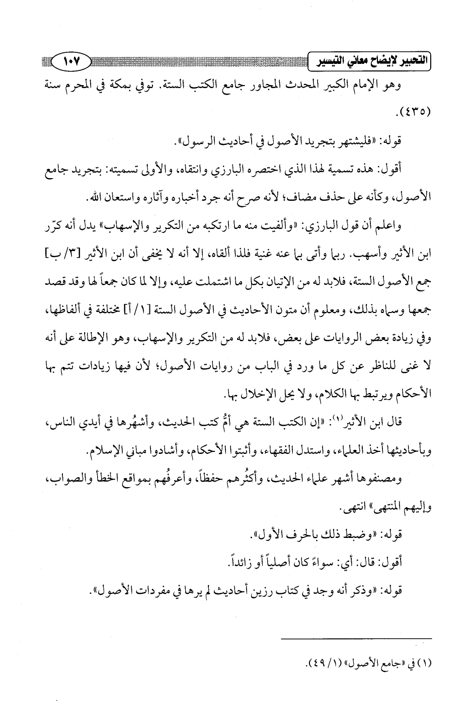 أقول: هذه تسمية لهذا الذي اختصره البارزي وانتقاه، والأولى تسميته: بتجريد جامع الأصول، وكأنه على حذف مضاف؛ لأنه صرح أنه جرد أخباره وآثاره واستعان الله.