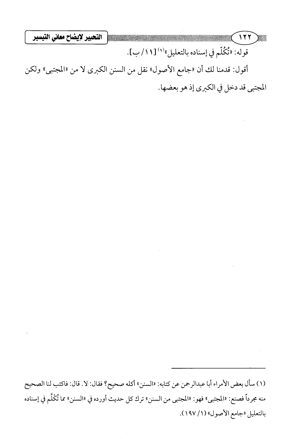 (¬1) سأل بعض الأمراء أبا عبد الرحمن عن كتابه: "السنن" أكله صحيح؟ فقال: لا. قال: فاكتب لنا الصحيح منه مجرداً فصنع: "المجتبى" فهو: "المجتبى من السنن" ترك كل حديث أورده في "السنن" مما تُكْلَّم في إسناده بالتعليل "جامع الأصول" (1/ 197).