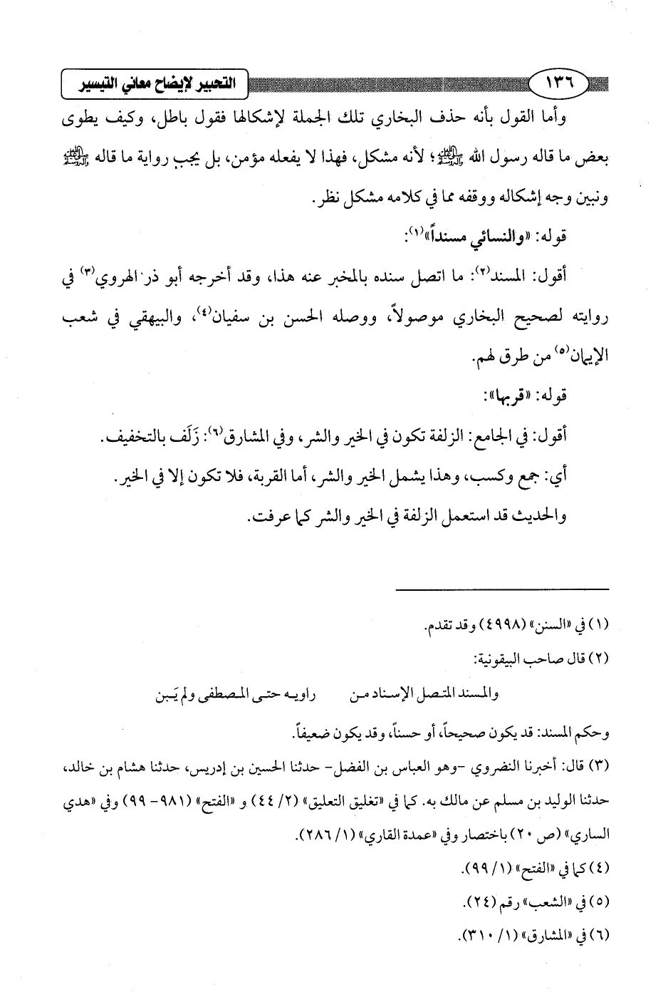 أقول: المسند (¬2): ما اتصل سنده بالمخبر عنه هذا، وقد أخرجه أبو ذر الهروي (¬3) في روايته لصحيح البخاري موصولاً، ووصله الحسن بن سفيان (¬4)، والبيهقي في شعب الإيمان (¬5) من طرق لهم.