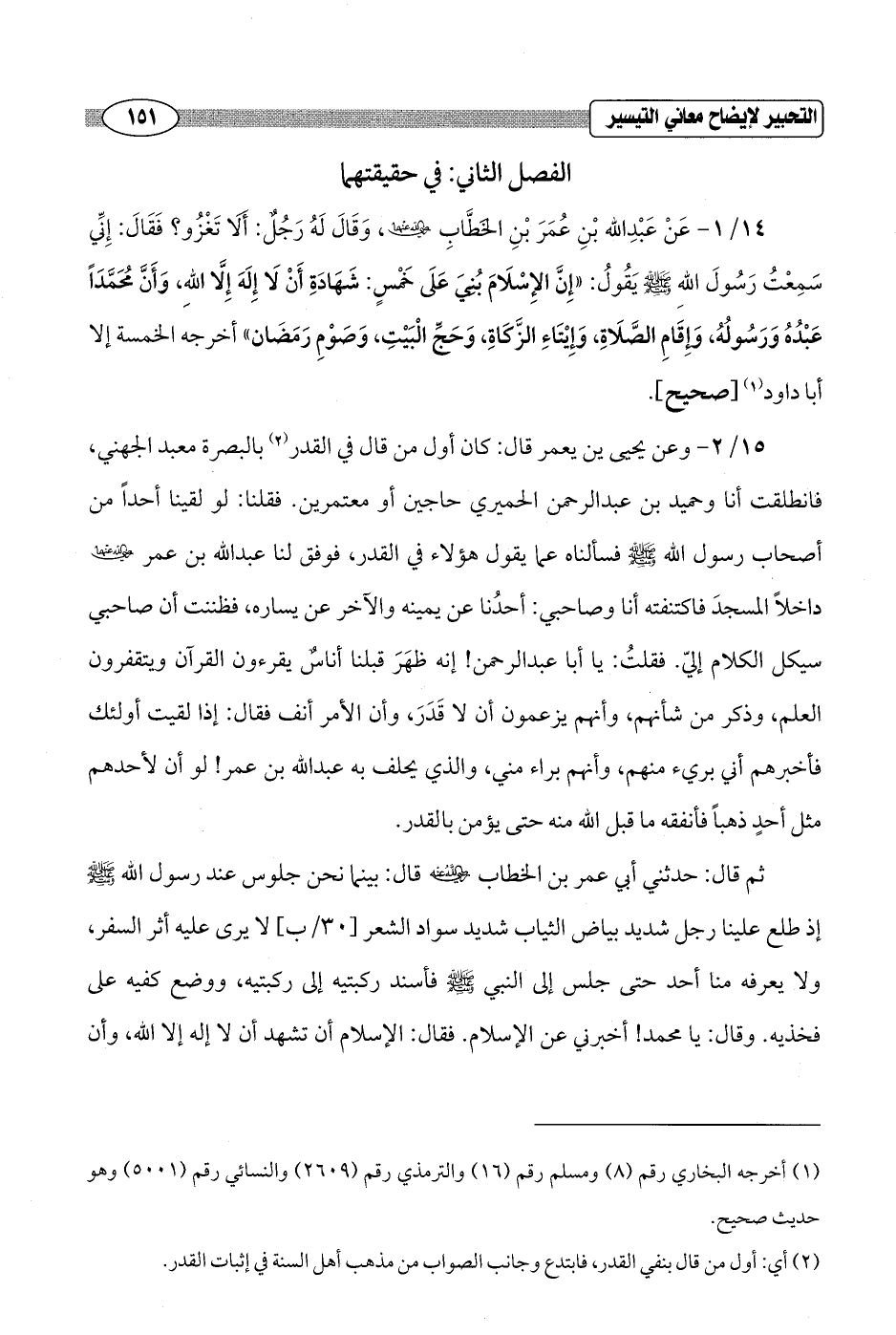 (¬1) أخرجه البخاري رقم (8) ومسلم رقم (16) والترمذي رقم (2609) والنسائي رقم (5001) وهو حديث صحيح.