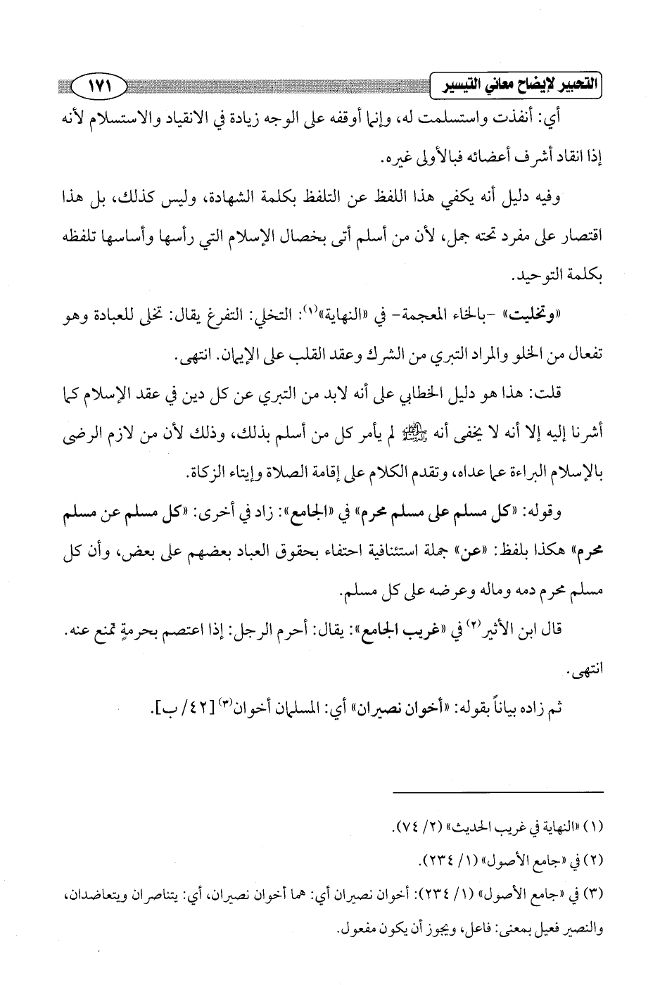 (¬3) في "جامع الأصول" (1/ 234): أخوان نصيران أي: هما أخوان نصيران، أي: يتناصران ويتعاضدان، والنصير فعيل بمعنى: فاعل، ويجوز أن يكون مفعول.