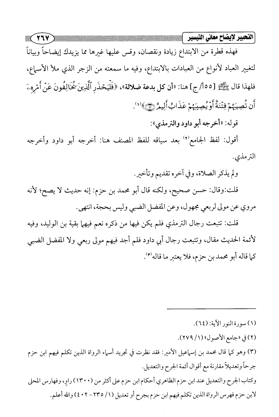 قلت: تتبعت رجال الترمذي فلم يكن فيها من ذكره نعم فيهما بقية بن الوليد، وفيه لأئمة الحديث مقال، وتتبعت رجال أبي داود فلم أجد فيهم مولى ربعي ولا المفضل الضبي كما قاله أبو محمَّد بن حزم، فلا يعتبر ما قاله (¬3).