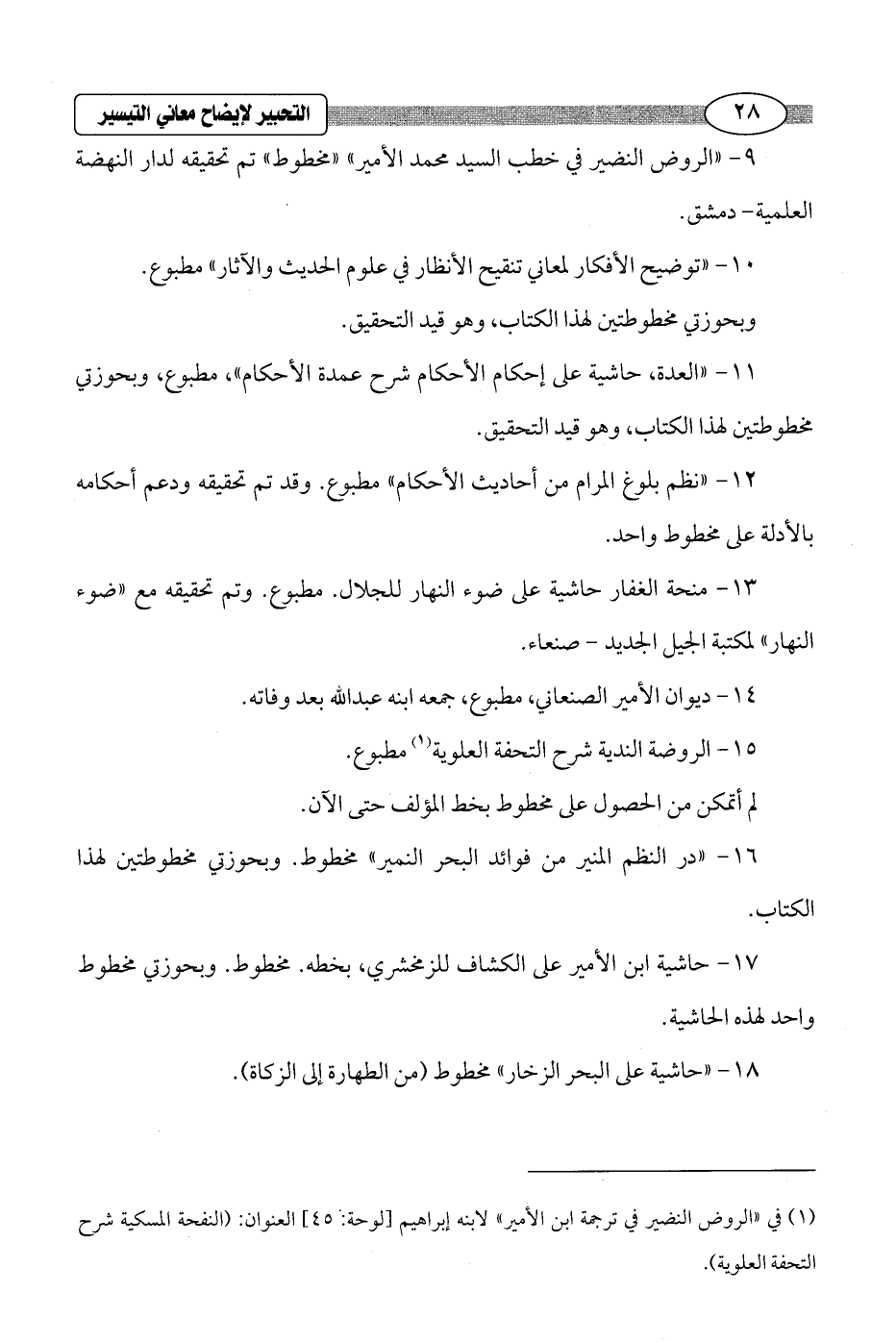 10 - "توضيح الأفكار لمعاني تنقيح الأنظار في علوم الحديث والآثار" مطبوع.