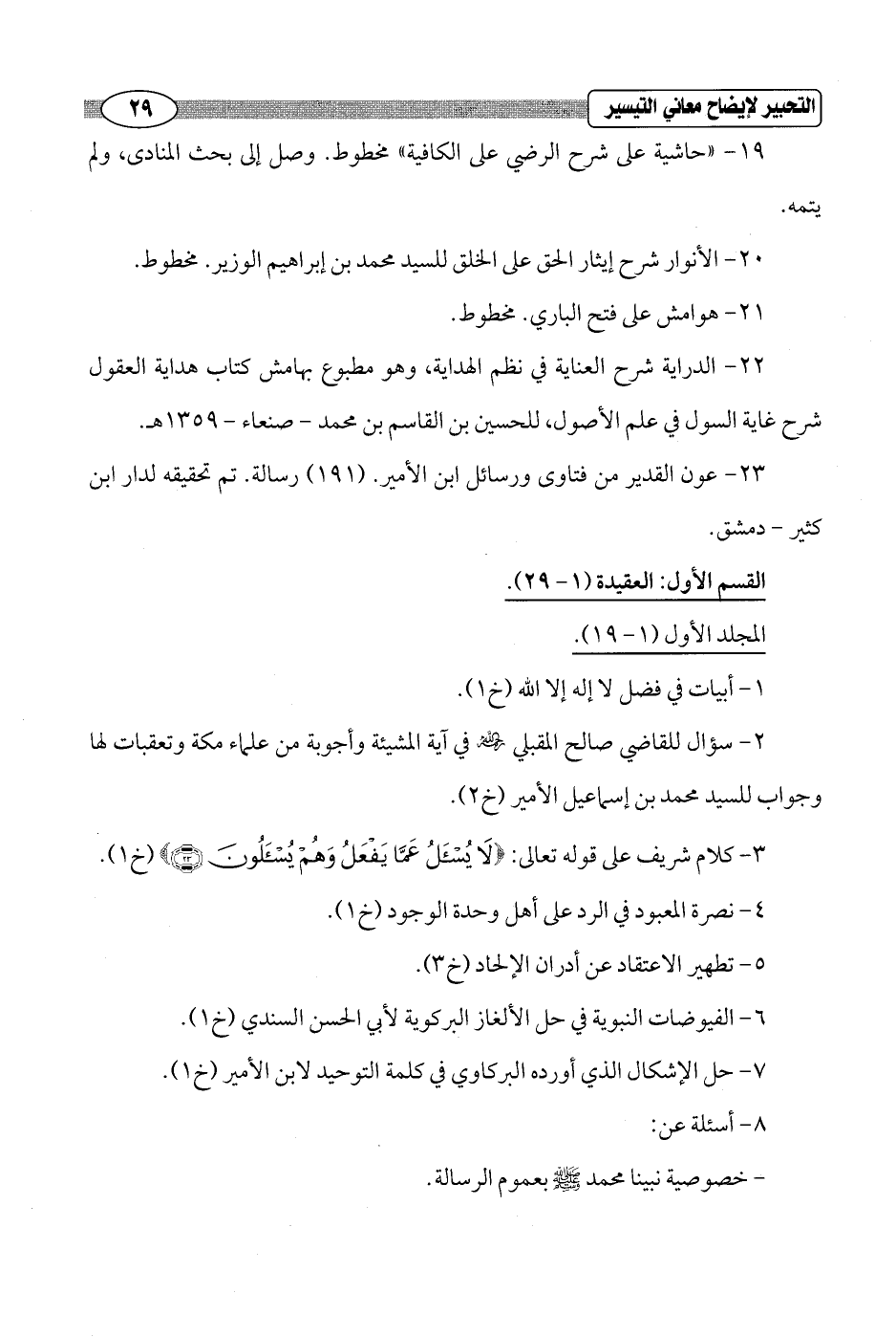 23 - عون القدير من فتاوى ورسائل ابن الأمير. (191) رسالة. تم تحقيقه لدار ابن كثير - دمشق.