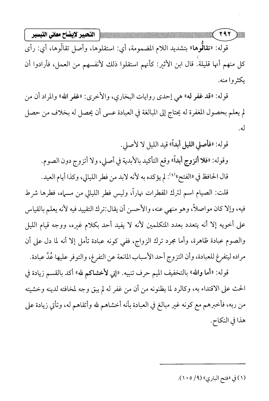وقوله: "فلا أتزوج أبداً" وقع التأكيد بالأبدية في أصلي، ولا أتزوج دون الصوم.