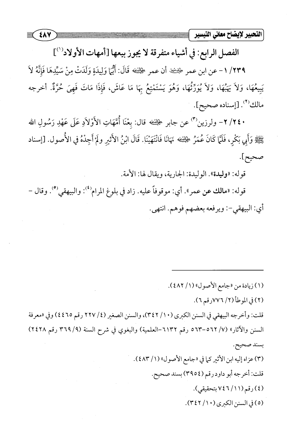 240/ 2 - ولرزين (¬3) عن جابر - رضي الله عنه - قال: بِعْنَا أُمَّهَاتِ الأَوْلاَدِ عَلَى عَهْدِ رَسُولِ الله - صلى الله عليه وسلم - وَأَبِي بَكْرٍ، فَلَمّا كَانَ عُمَرُ - رضي الله عنه - نَهَانَا فَانْتَهَيْنَا. قَالَ ابْنُ الأَثيرِ ولَمْ أَجِدْهُ في الأُصول. [إسناد صحيح].