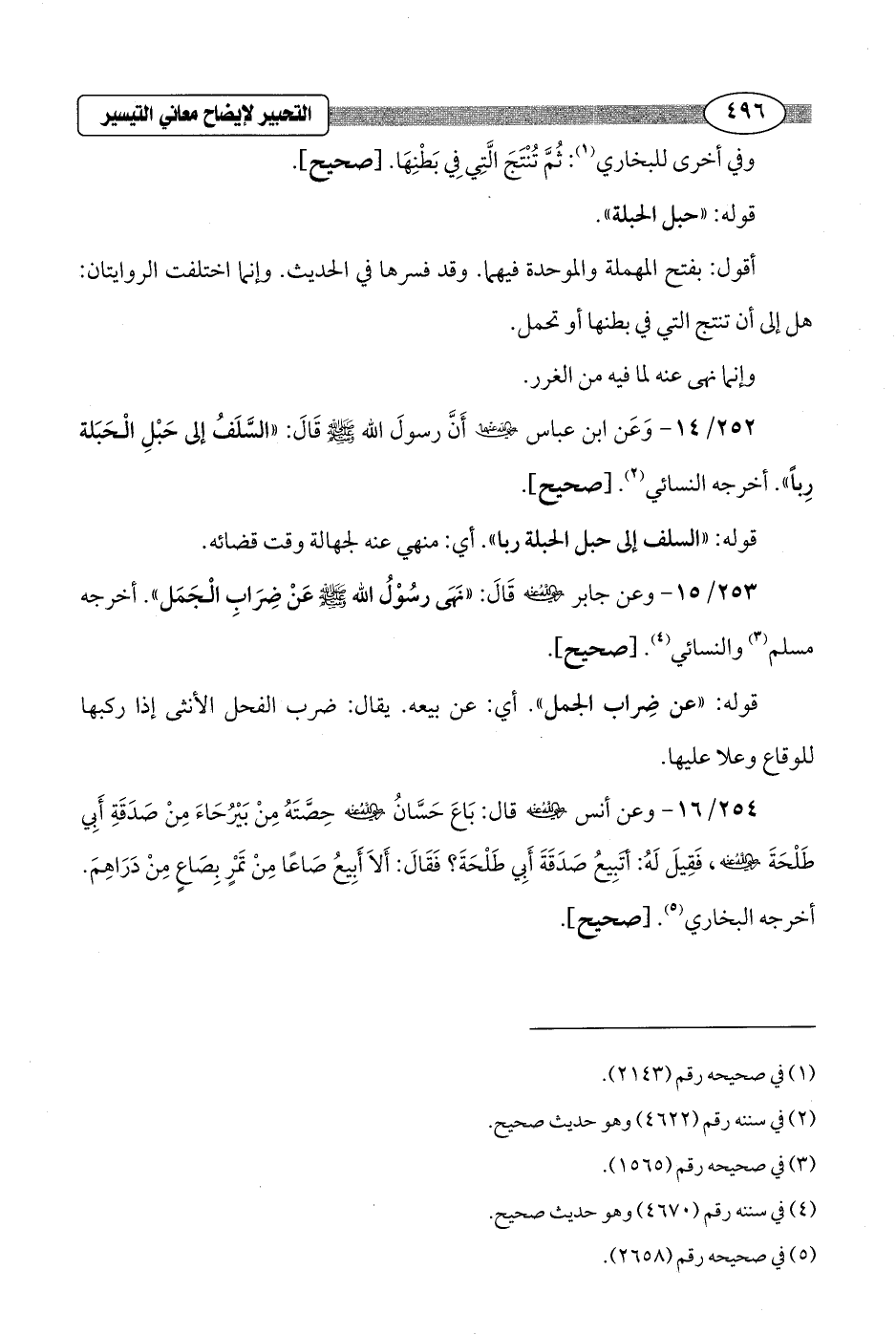 252/ 14 - وَعَن ابن عباس - رضي الله عنهما - أَنَّ رسولَ الله - صلى الله عليه وسلم - قَالَ: "السَّلَفُ إلى حَبْلِ الْحَبَلة رِباً". أخرجه النسائي (¬2). [صحيح].