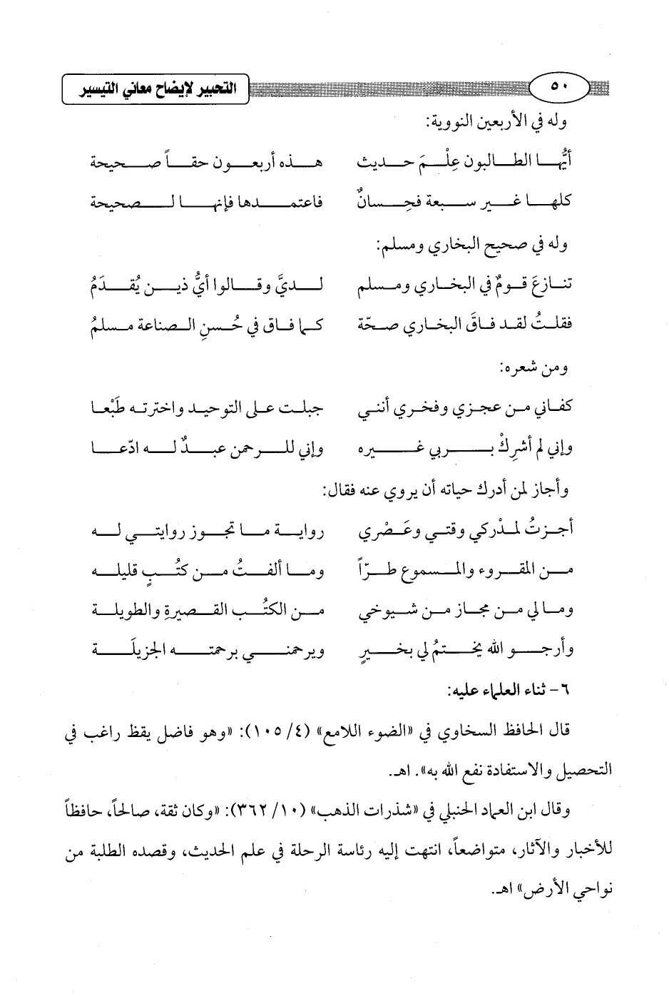 فقلتُ لقد فاقَ البخاري صحّة ... كما فاق في حُسنِ الصناعة مسلمُ