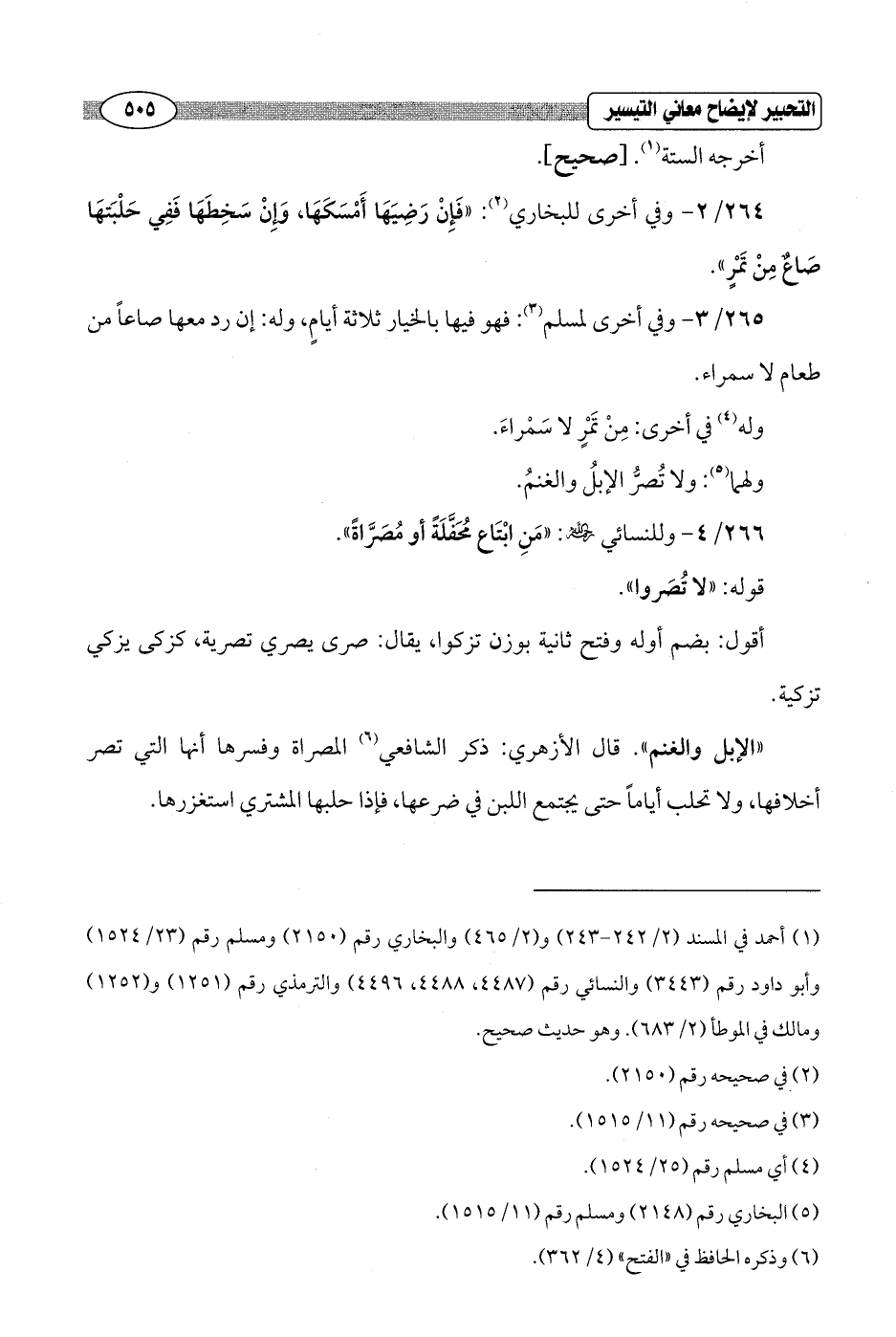 266/ 4 - وللنسائي - رحمه الله -: "مَنِ ابْتَاع مُحَفَّلَةً أو مُصَرَّاةً".