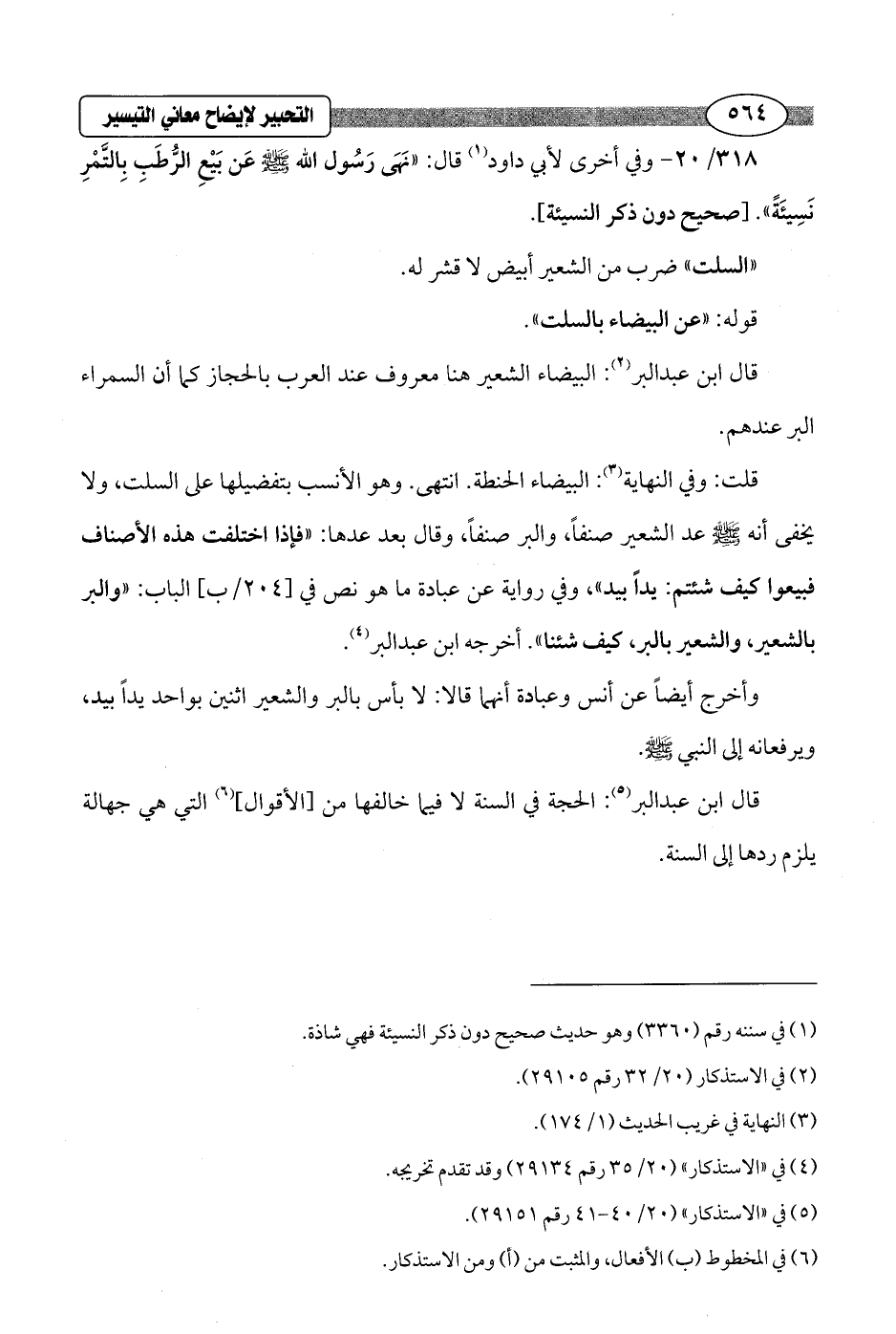 318/ 20 - وفي أخرى لأبي داود (¬1) قال: "نَهَى رَسُول الله - صلى الله عليه وسلم - عَن بَيْعِ الرُّطَبِ بِالتَّمْرِ نَسِيئَةً". [صحيح دون ذكر النسيئة].