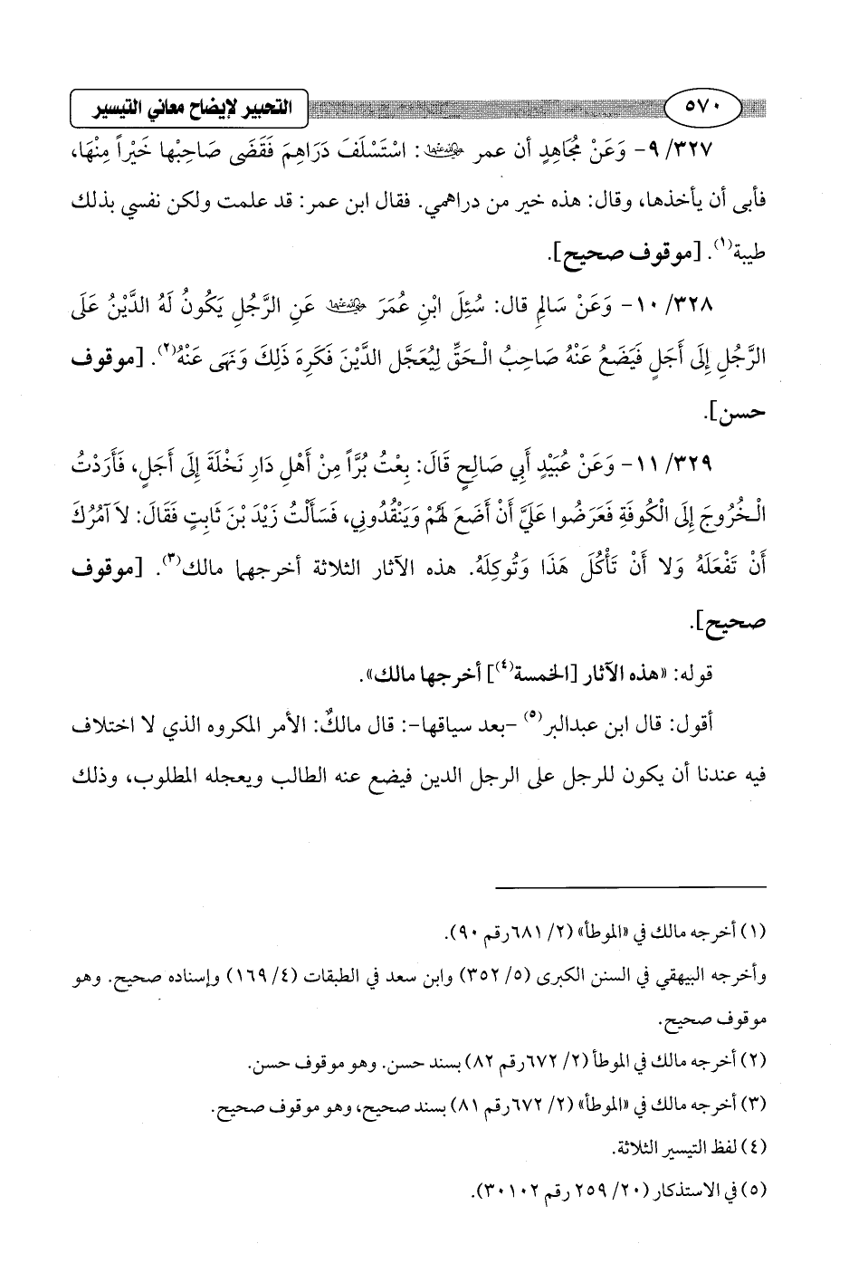(¬2) أخرجه مالك في الموطأ (2/ 672 رقم 82) بسند حسن. وهو موقوف حسن.