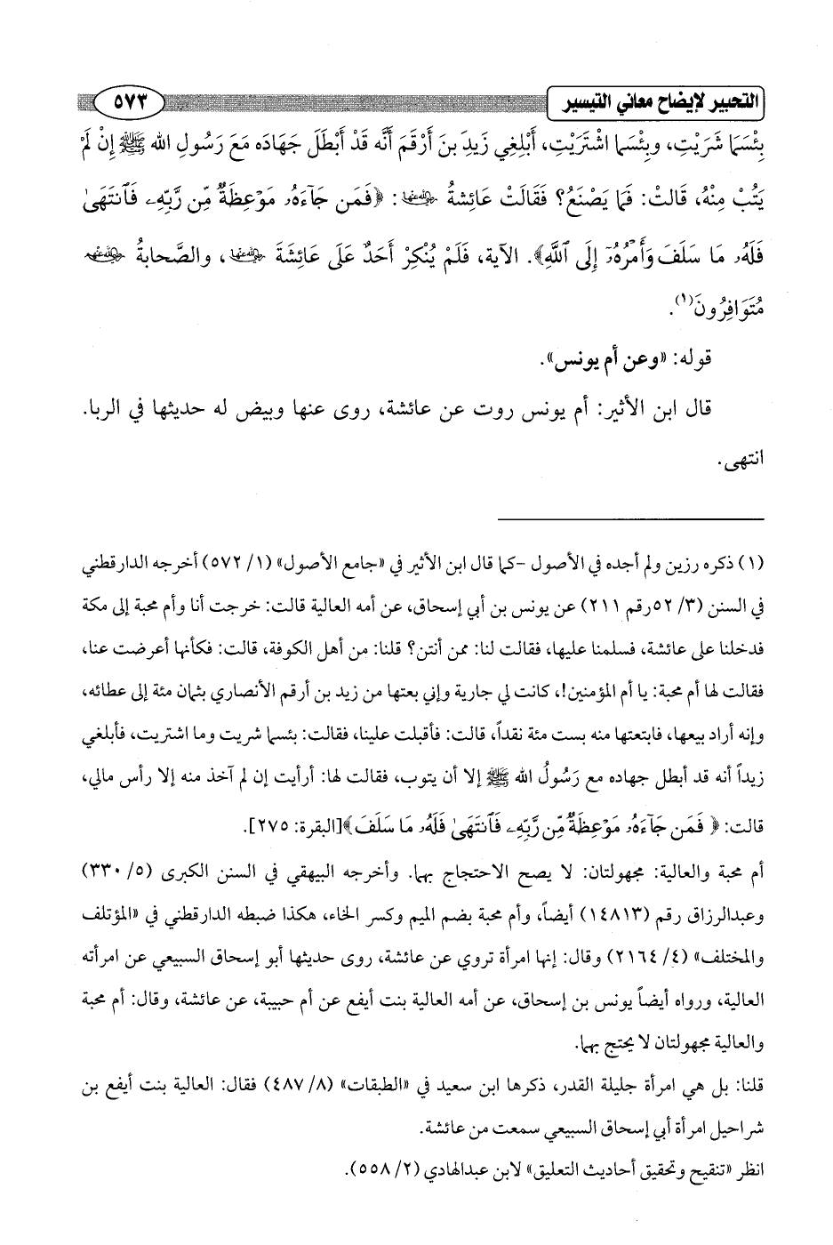 قال ابن الأثير: أم يونس روت عن عائشة، روى عنها وبيض له حديثها في الربا. انتهى.