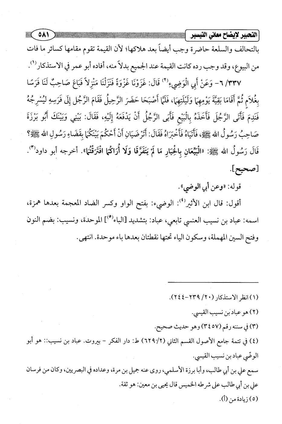 (¬4) في تتمة جامع الأصول القسم الثاني (2/ 629) ط: دار الفكر - بيروت. عباد بن نسيب: هو أبو الوضّي عباد بن نسيب القيسي.