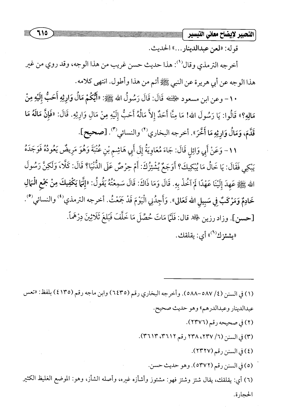 (¬1) في السنن (4/ 587 - 588). وأخرجه البخاري رقم (6435) وابن ماجه رقم (4135) بلفظ: "تعس عبد الدينار وعبد الدرهم" وهو حديث صحيح.