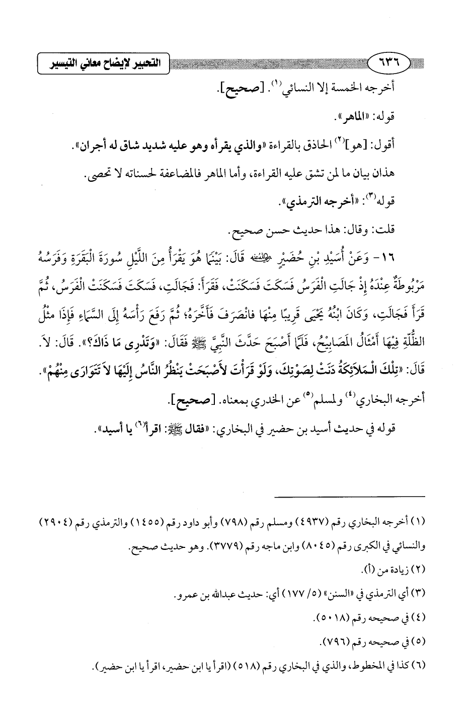 (¬6) كذا في المخطوط، والذي في البخاري رقم (518) (اقرأ يا ابن حضير، اقرأ يا ابن حضير).