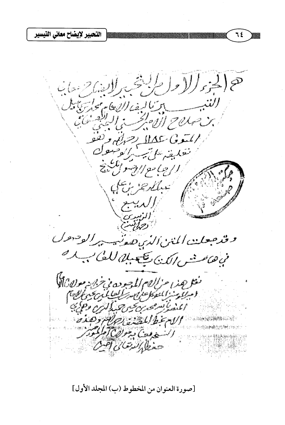 [صورة العنوان من المخطوط (ب) المجلد الأول]