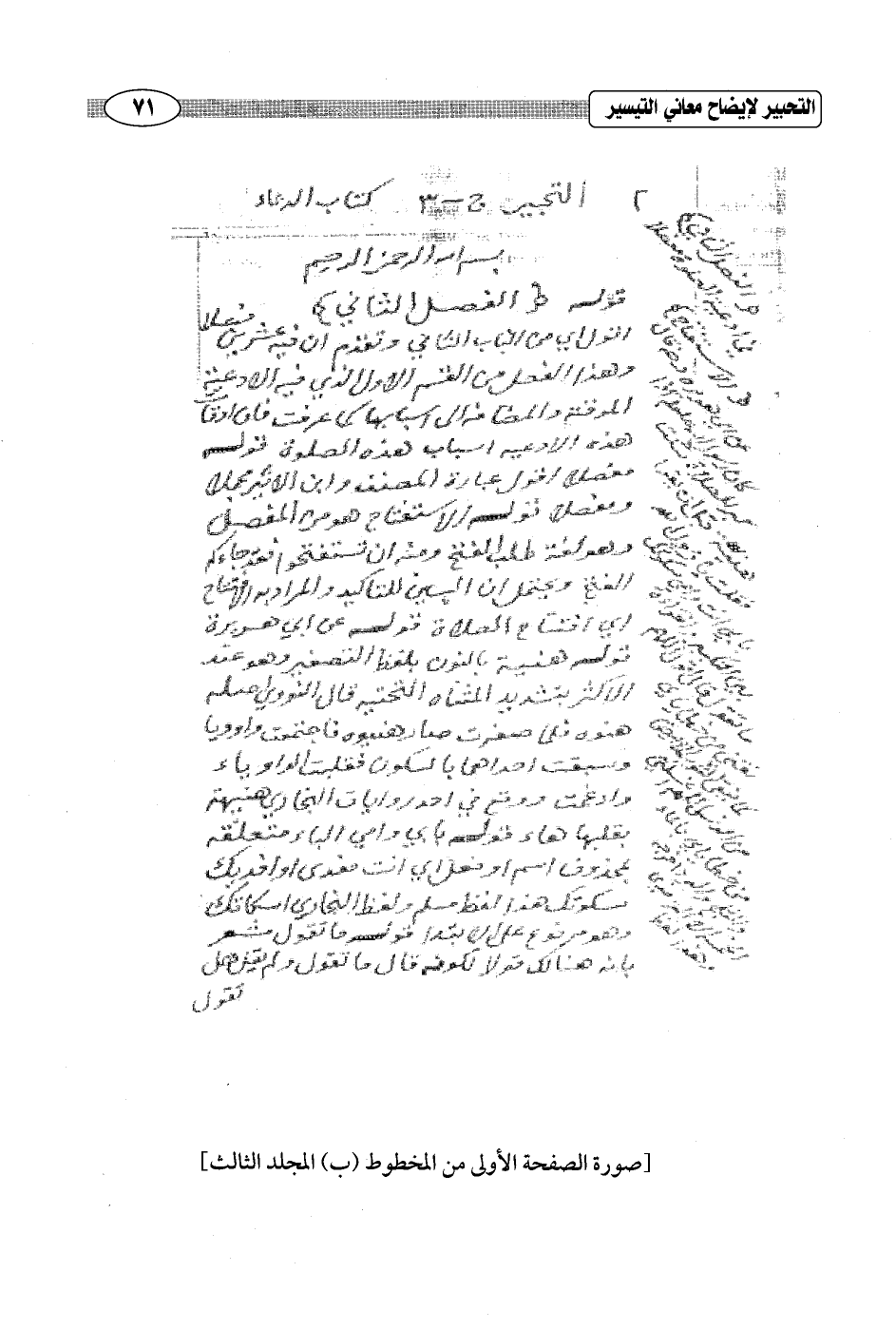 [صورة الصفحة الأولى من المخطوط (ب) المجلد الثالث]