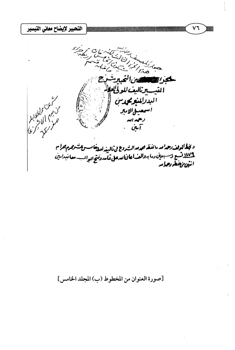 [صورة العنوان من المخطوط (ب) المجلد الخامس]