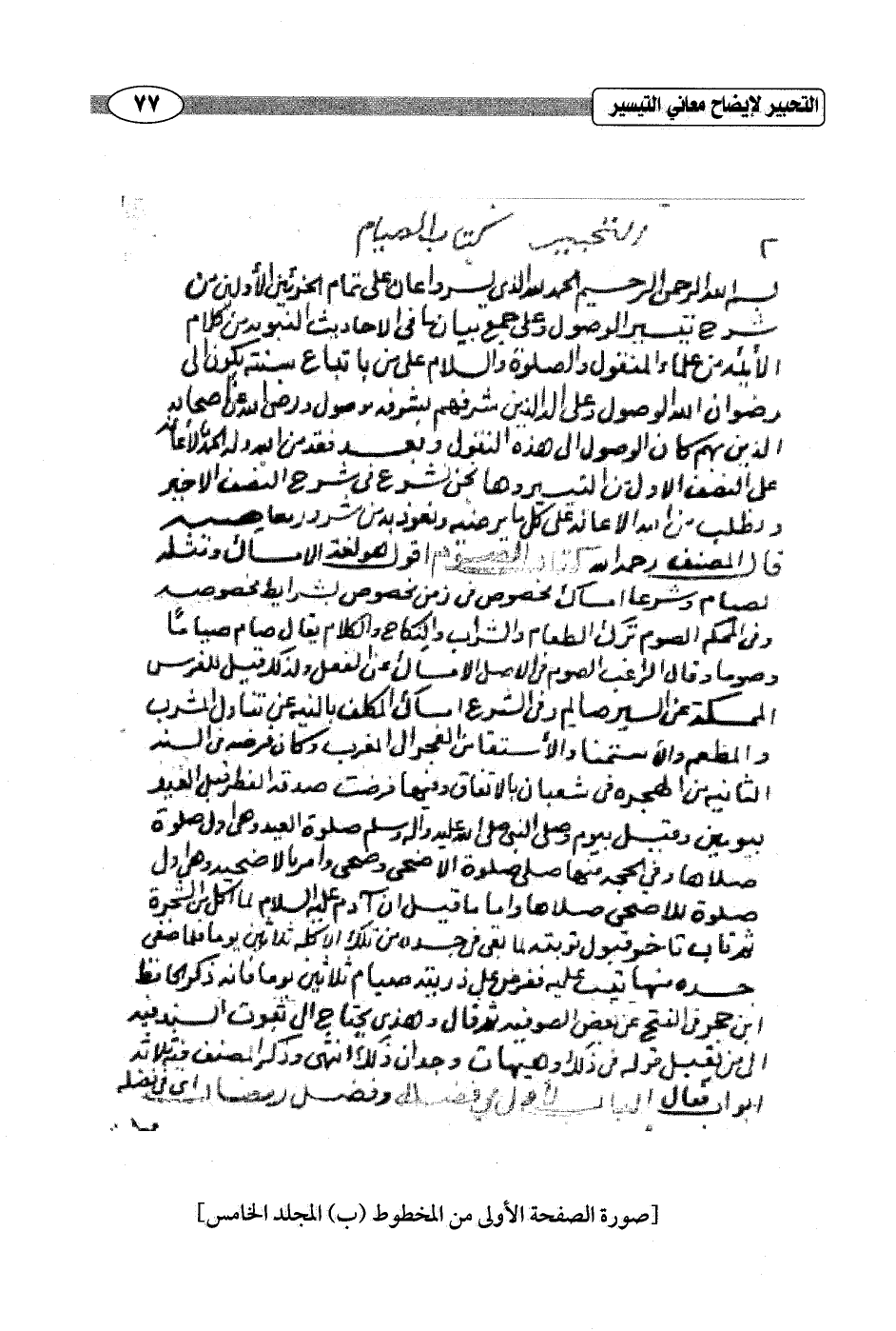 [صورة الصفحة الأولى من المخطوط (ب) المجلد الخامس]