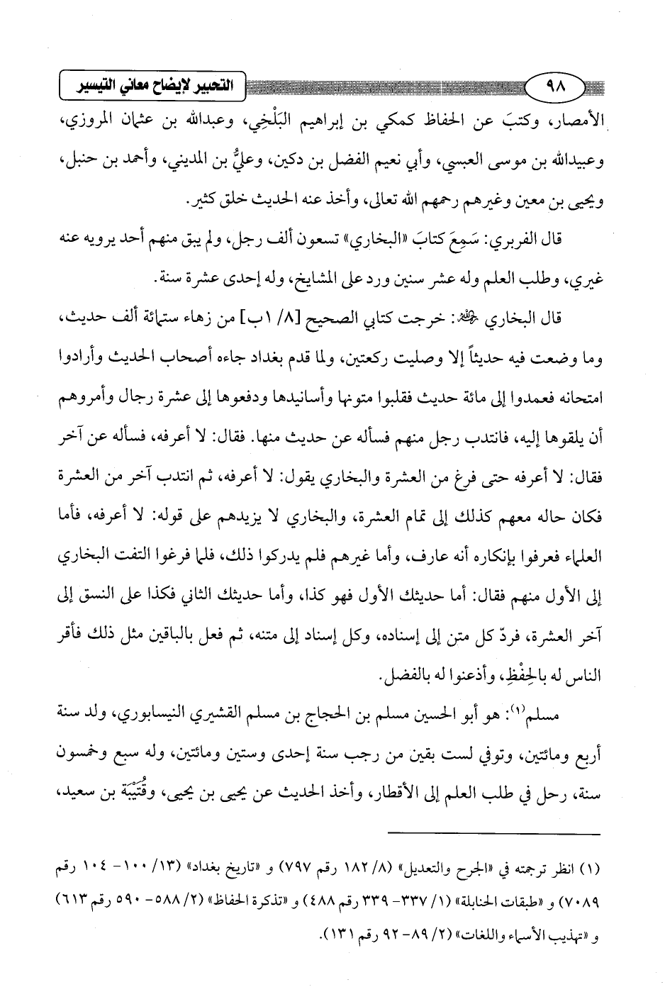 مسلم (¬1): هو أبو الحسين مسلم بن الحجاج بن مسلم القشيري النيسابوري، ولد سنة أربع ومائتين، وتوفي لست بقين من رجب سنة إحدى وستين ومائتين، وله سبع وخمسون سنة، رحل في طلب العلم إلى الأقطار، وأخذ الحديث عن يحيى بن يحيى، وقُتَيْبَة بن سعيد،