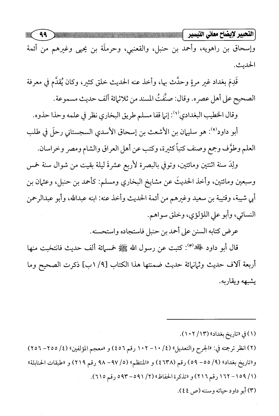 أبو داود (¬2): هو سليمان بن الأشعث بن إسحاق الأسدي السجستاني رحلَ في طلب العلم وطوَّف وجمع وصنف كتباً كثيرة، وكتب عن أهل العراق والشام ومصر وخراسان.
