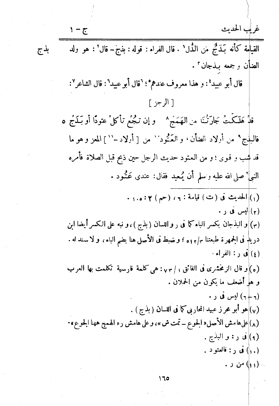 فالبذج من أَوْلَاد الضَّأْن والعَتُود من [أَوْلَاد -] الْمعز وَهُوَ مَا قد شب وقوى وَمن العتود حَدِيث الرجل حِين ذبح قبل الصَّلَاة فَأمره النَّبِيّ صلي اللَّه عَلَيْهِ وَسلم أَن يُعيد فَقَالَ: عِنْدِي عَتُود.