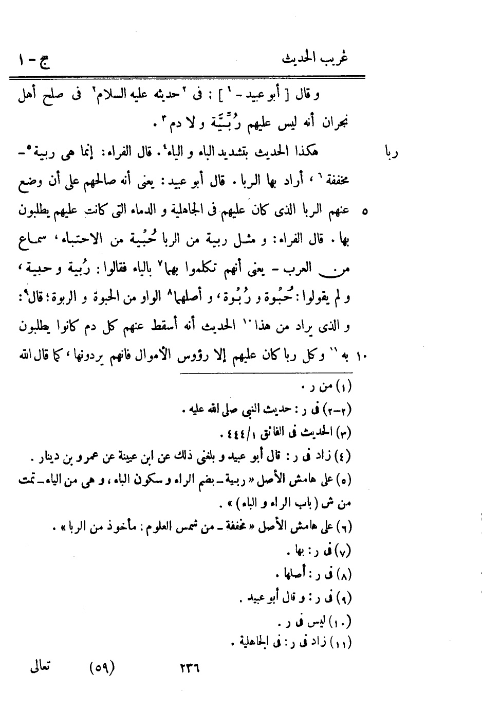 سدن الرِّبَا. قَالَ أَبُو عبيد: يَعْنِي أَنه صَالحهمْ على أَن وضع عَنْهُمُ الرِّبَا الَّذِي كَانَ عَلَيْهِم فِي الْجَاهِلِيَّة والدماء الَّتِي كَانَت عَلَيْهِم يطْلبُونَ بهَا. قَالَ الْفراء: وَمثل ربية من الرِّبَا حبية من الاحتباء سَماع من الْعَرَب - يَعْنِي أَنهم تكلمُوا بهما بِالْيَاءِ فَقَالُوا: ربية وحبية وَلم يَقُولُوا: حبوة وربوة وأصلهما الْوَاو من الحبوة والربوةقال: وَالَّذِي يُرَاد من هَذَا الحَدِيث أَنه أسقط عَنْهُمْ كل دم كَانُوا يطْلبُونَ بِهِ وكل رَبًّا كَانَ عَلَيْهِم إِلَّا رُؤُوس الْأَمْوَال فَإِنَّهُم يردونها كَمَا قَالَ الله