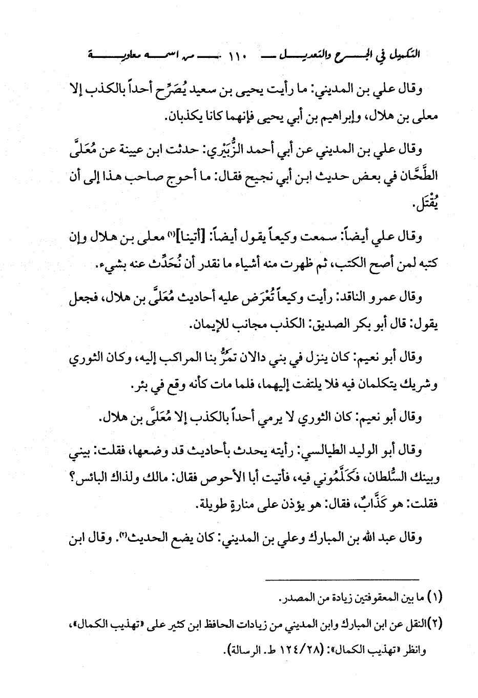 كتاب التكميل في الجرح والتعديل ومعرفة الثقات والضعفاء والمجاهيل (اسم الجزء: 1)