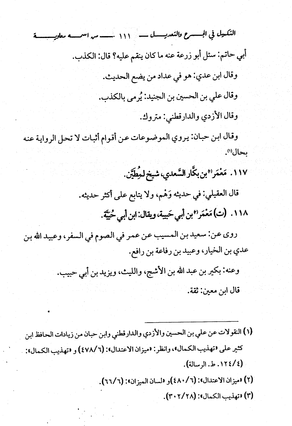 كتاب التكميل في الجرح والتعديل ومعرفة الثقات والضعفاء والمجاهيل (اسم الجزء: 1)