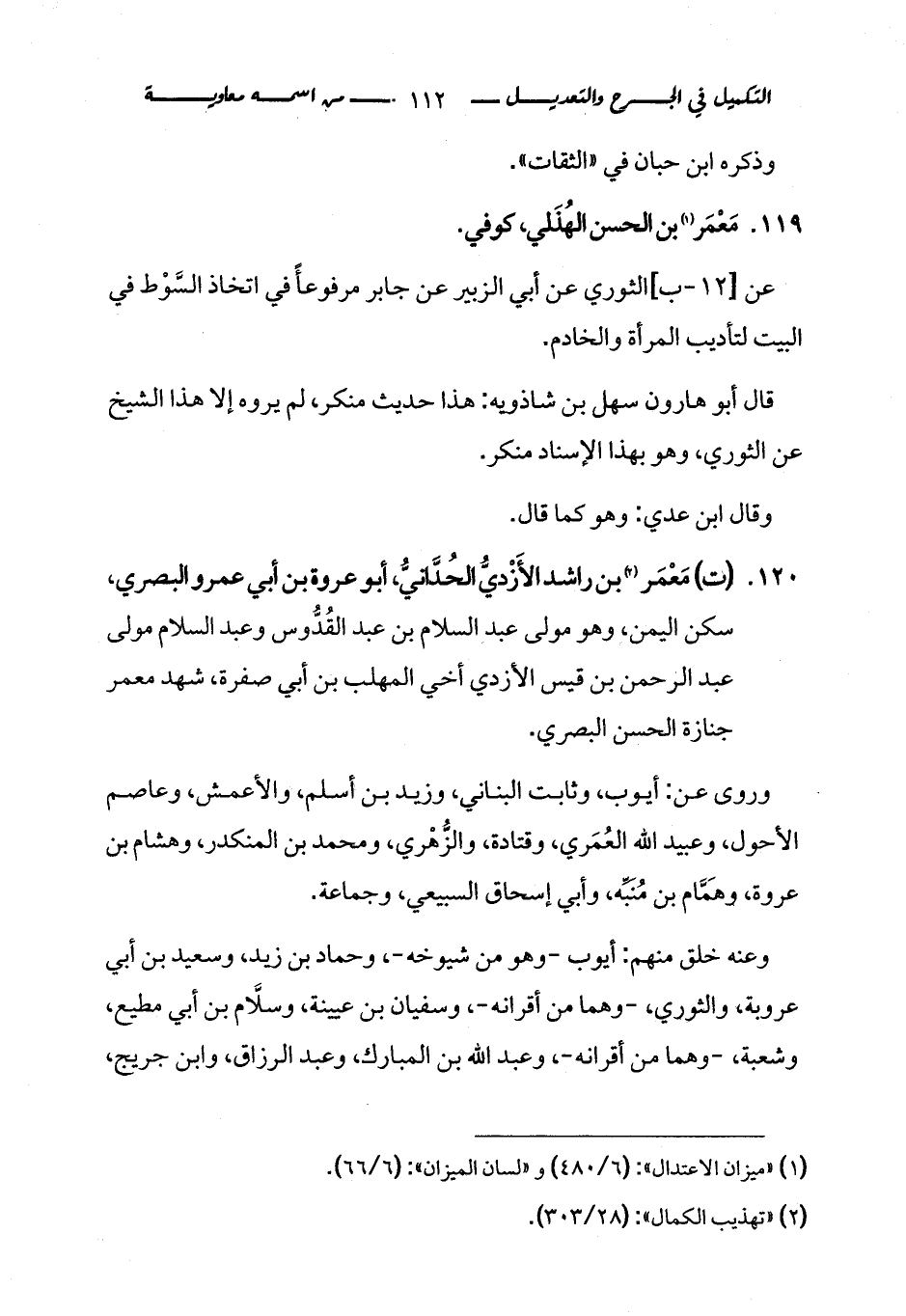 كتاب التكميل في الجرح والتعديل ومعرفة الثقات والضعفاء والمجاهيل (اسم الجزء: 1)