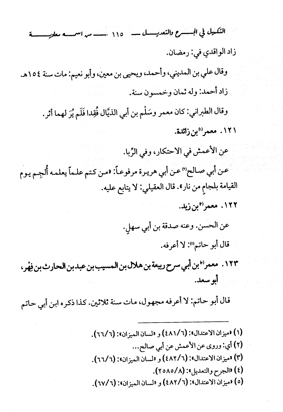 كتاب التكميل في الجرح والتعديل ومعرفة الثقات والضعفاء والمجاهيل (اسم الجزء: 1)