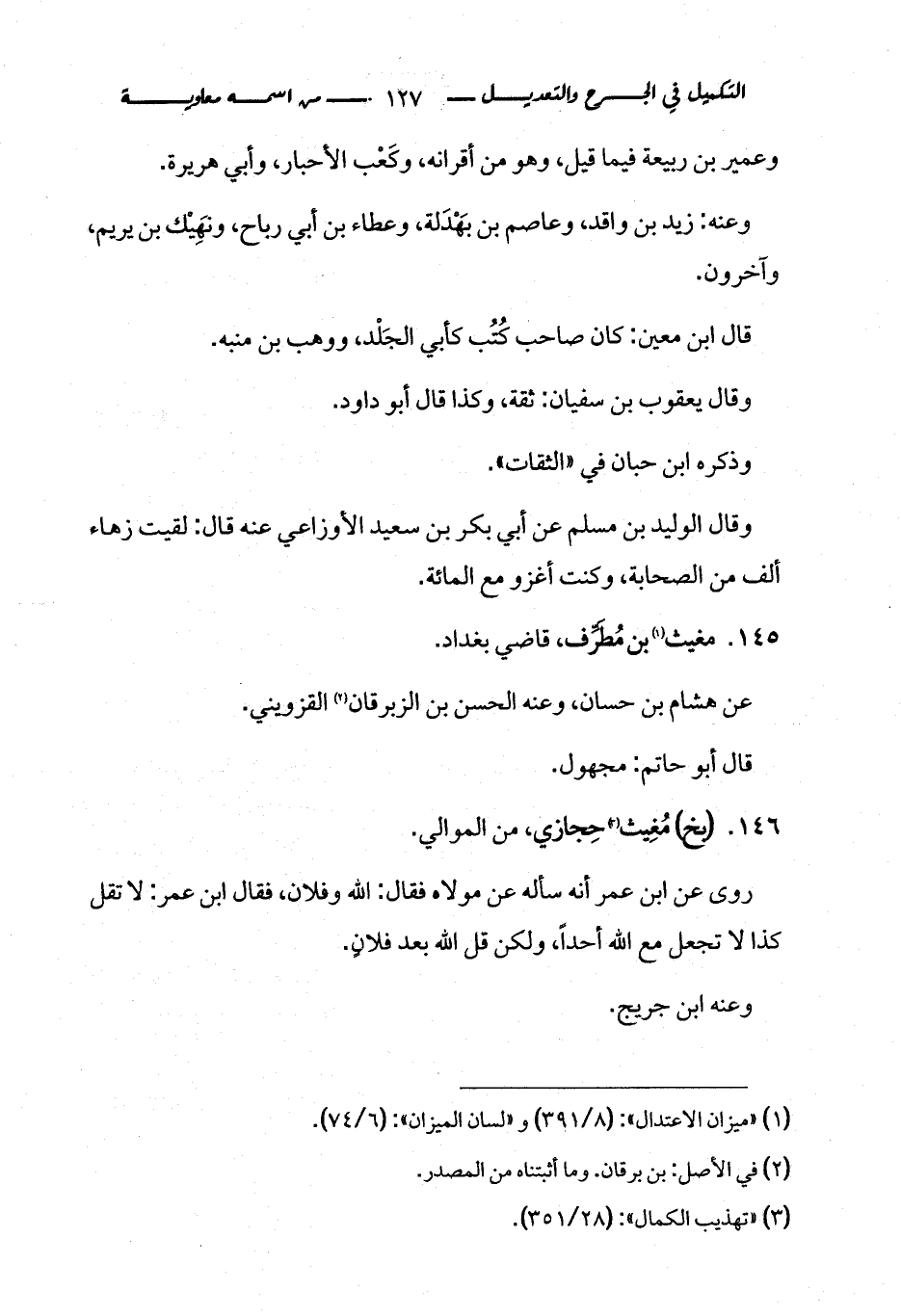 كتاب التكميل في الجرح والتعديل ومعرفة الثقات والضعفاء والمجاهيل (اسم الجزء: 1)