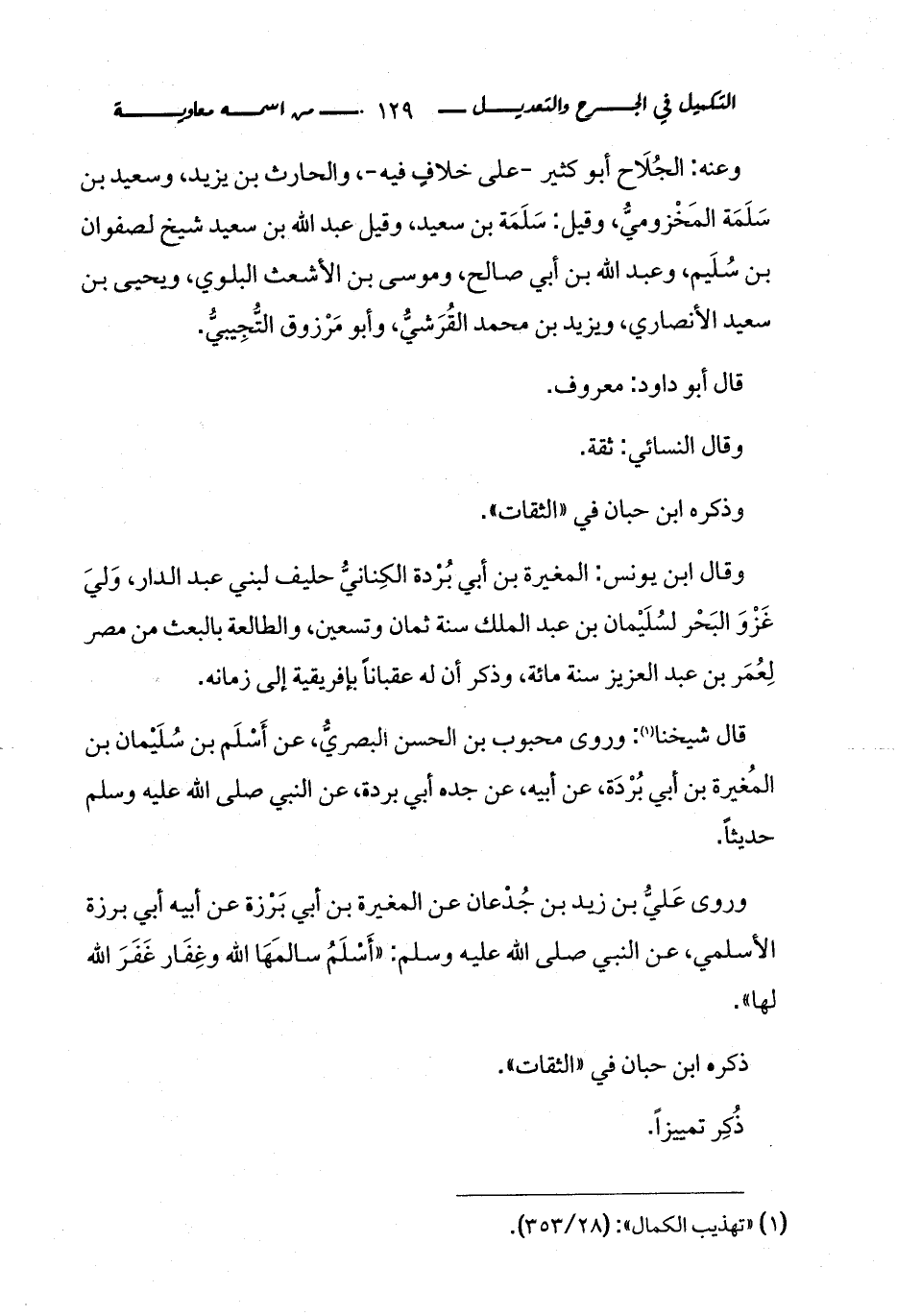 كتاب التكميل في الجرح والتعديل ومعرفة الثقات والضعفاء والمجاهيل (اسم الجزء: 1)