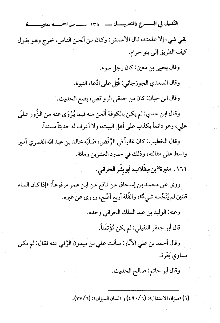 كتاب التكميل في الجرح والتعديل ومعرفة الثقات والضعفاء والمجاهيل (اسم الجزء: 1)