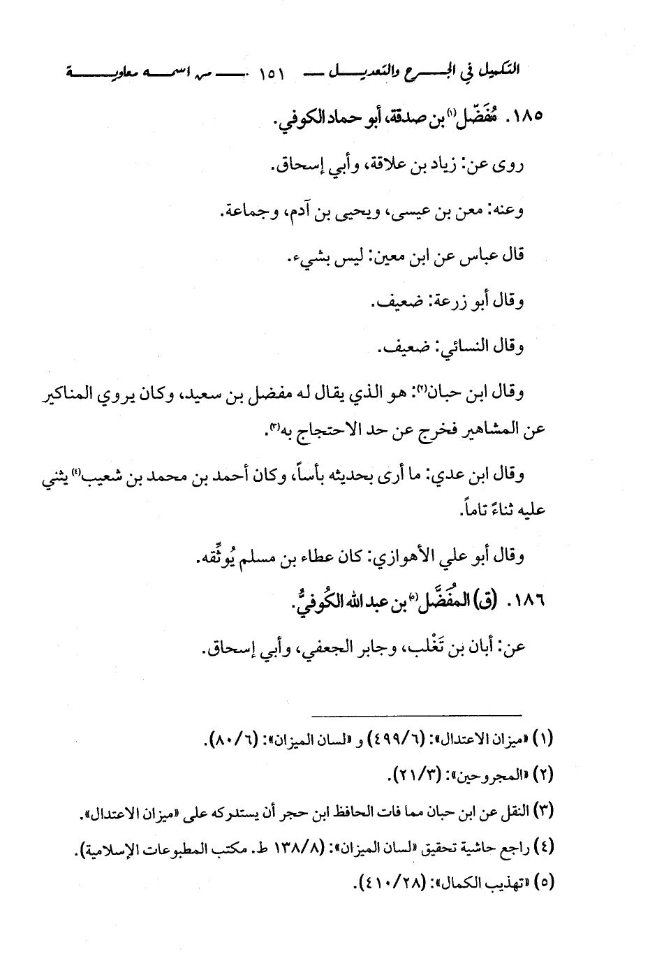 كتاب التكميل في الجرح والتعديل ومعرفة الثقات والضعفاء والمجاهيل (اسم الجزء: 1)